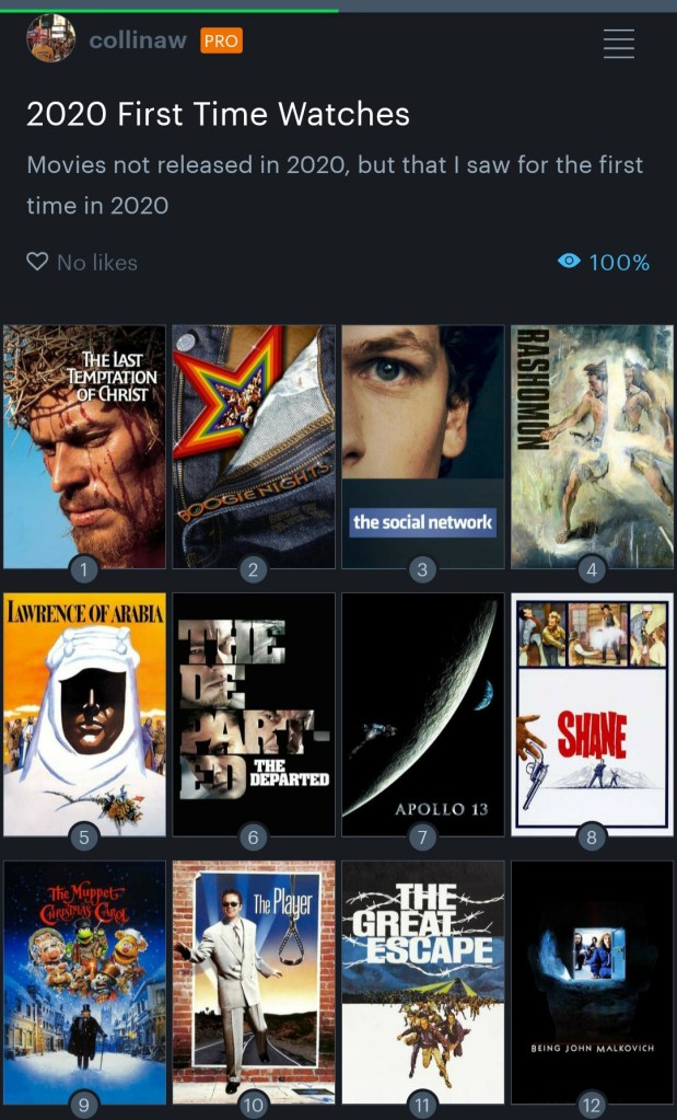 So, I decided to rank my top ten here. These are all movies released before 2020 that I had never seen until this year.