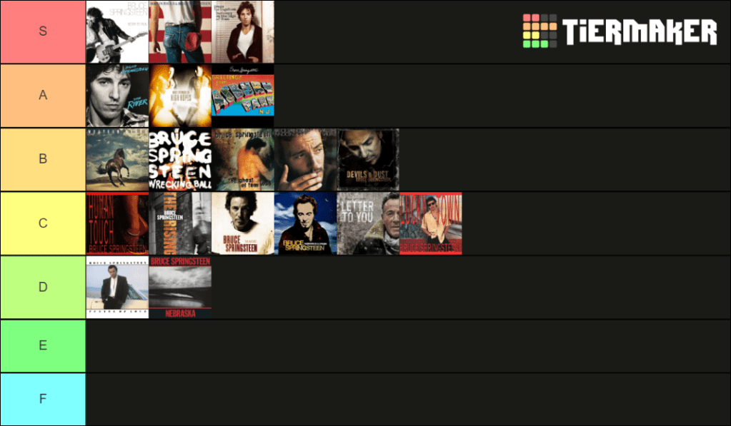 With Eminem there were clear breaks correlating with what was going on in his life at the time. Springsteen isn’t as upfront and isn’t nearly as concerned about himself in his music, so it seems asinine to try and review them in the same style as I did in the previous article. Instead, I’d like to talk about what endears me to Springsteen as an artist.
